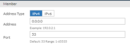 Under the Member section, click Create New to add the IP address of the remote DNS server. Save the configuration and repeat to create as many IP address objects as needed to include in the Remote DNS Server configuration.