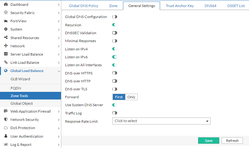 Navigate to Global Load Balance > Zone Tools. Click the General Settings tab.