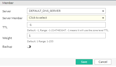 2. Click Create New to display the configuration editor. Enter a name for the remote DNS Server and click Save to enable configuration for the Member section.