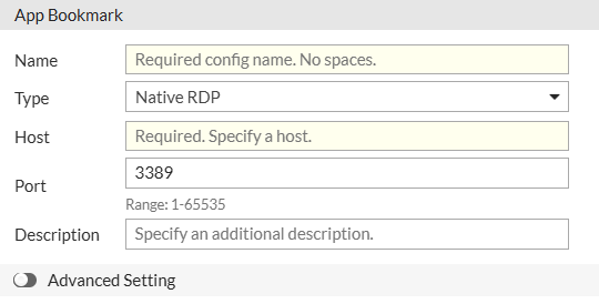 | Description | Optional description for the Native RDP bookmark. |