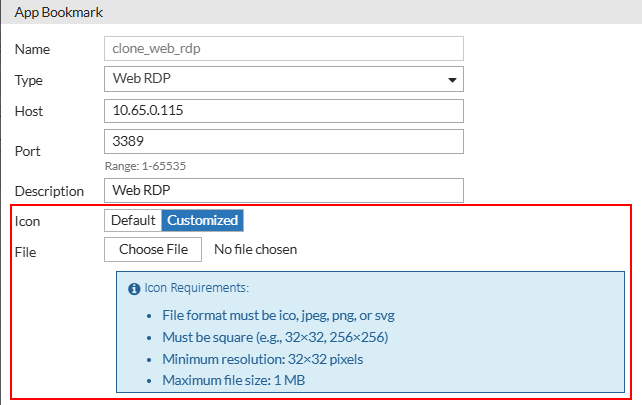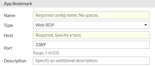 | Description | Optional description for the Web RDP bookmark. |