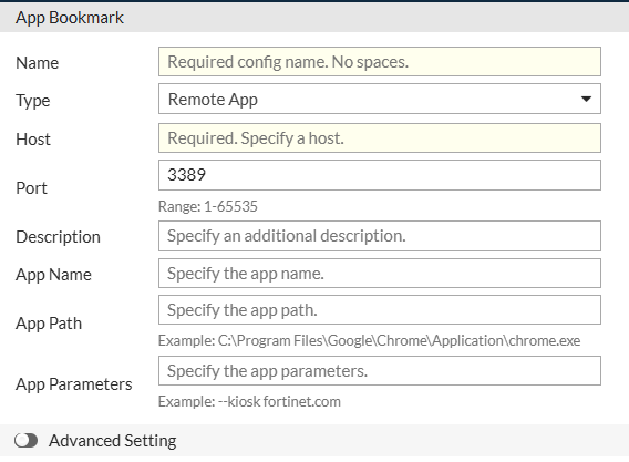 | Description | Optional description for the RemoteApp bookmark. |