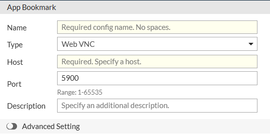 | Description | Optional description for the Web VNC bookmark. |