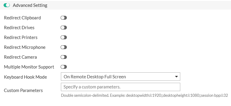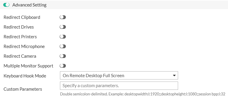 | Redirect Clipboard | Allows clipboard sharing between the remote and local machine. |