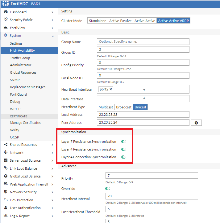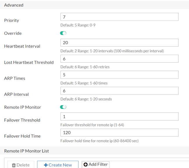 Note: The configuration source is determined by the Config Priority set in the HA setting. When the configuration priority values of the nodes are different, the configuration of the device with the lower configuration priority will prevail. For the secondary node, ensure the Config Priority is set to a number higher than the device you want as the configuration source.