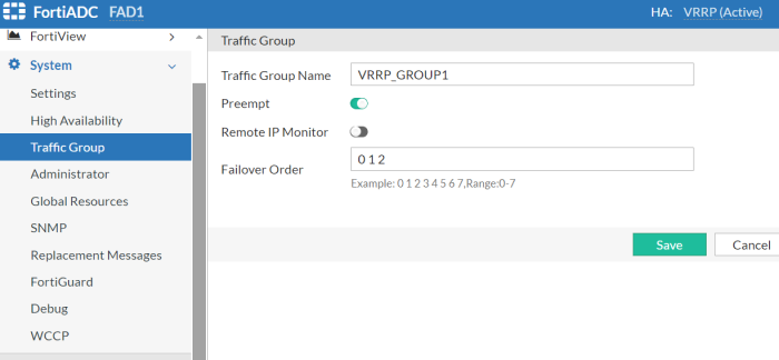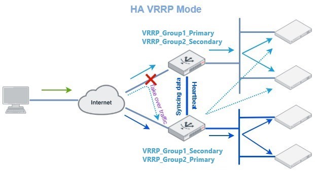 FortiADC implements a VRRP-like high availability (HA) mode rather than the exact VRRP protocol. Consequently, FortiADC's HA Active-Active VRRP mode is referred to as a VRRP-like HA mode.