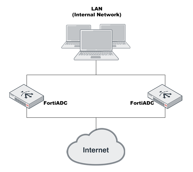 Figure 2: An Active-Active-VRRP cluster configuration using two FortiADC units