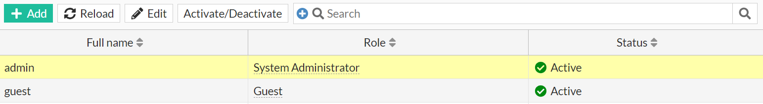 Select a user and click Edit to modify user information. This includes changing the user's full name, role or password.