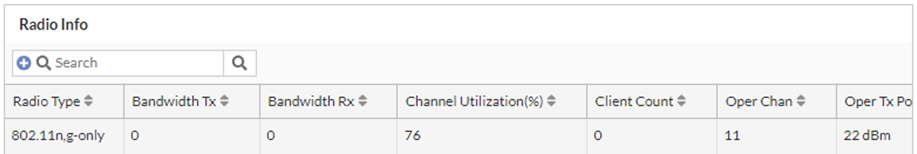 | Radio Type | The impacted radio and band associated with the client. |