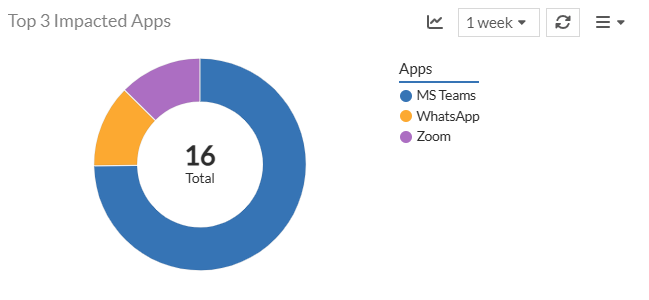 This panel displays the 3 conference applications running on client devices that are most impacted. These applications are Microsoft Teams calls, Google Meet, Zoom, WhatsApp audio and video call, and Apple FaceTime.