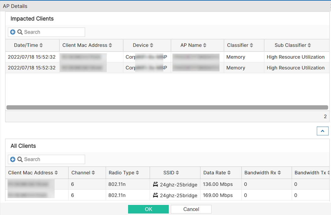This tab provides details of the impacted clients and also lists all the clients associated with the AP.
