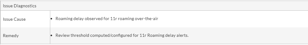 | Roaming Delay | The delay (latency) in client roaming (milliseconds) in case of threshold breach. |
