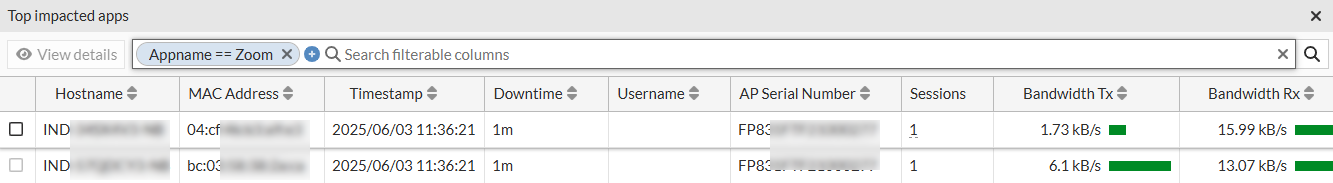 | Access Point | The name of the AP that the impacted client associated with. |
