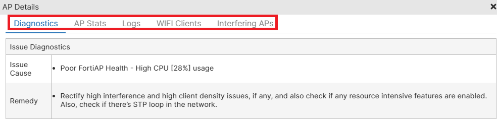 | Access Point | The name of the FortiAP. |