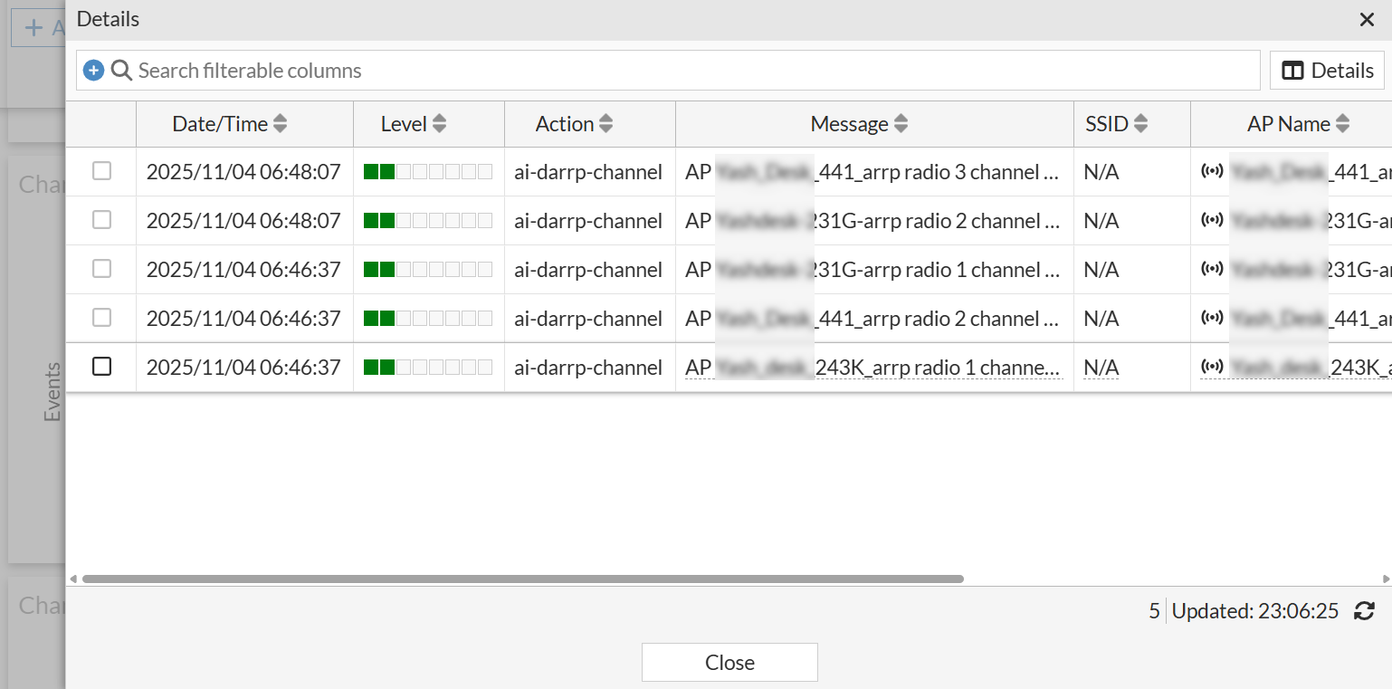 When the Non-AI-ARRP filter is applied, it displays channel changes triggered by DARRP.