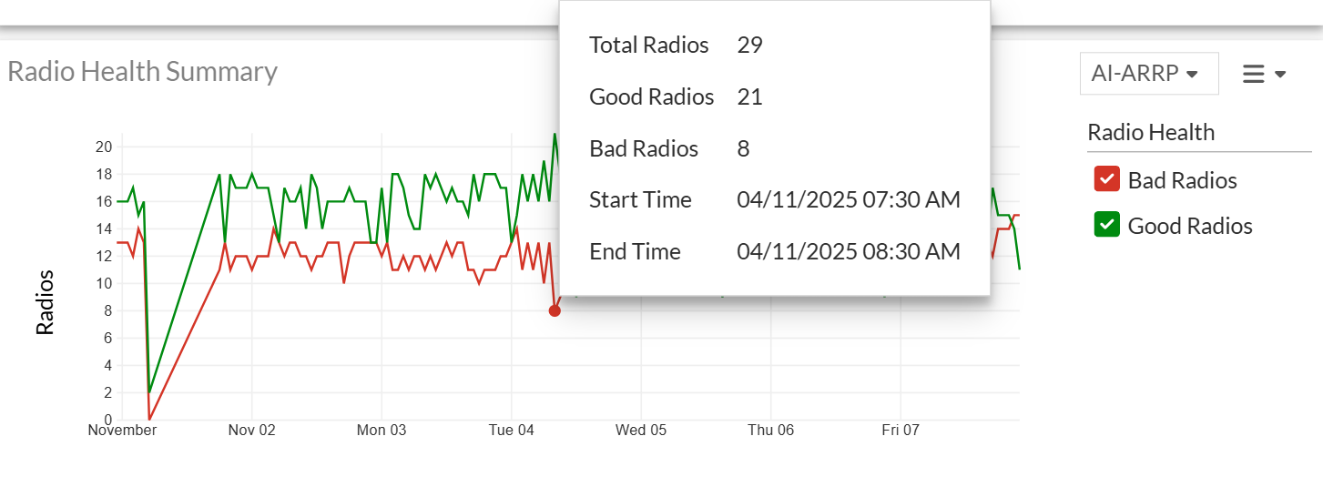 All: Shows data covering both AI-ARRP managed radios and Non-AI-ARRP radios.