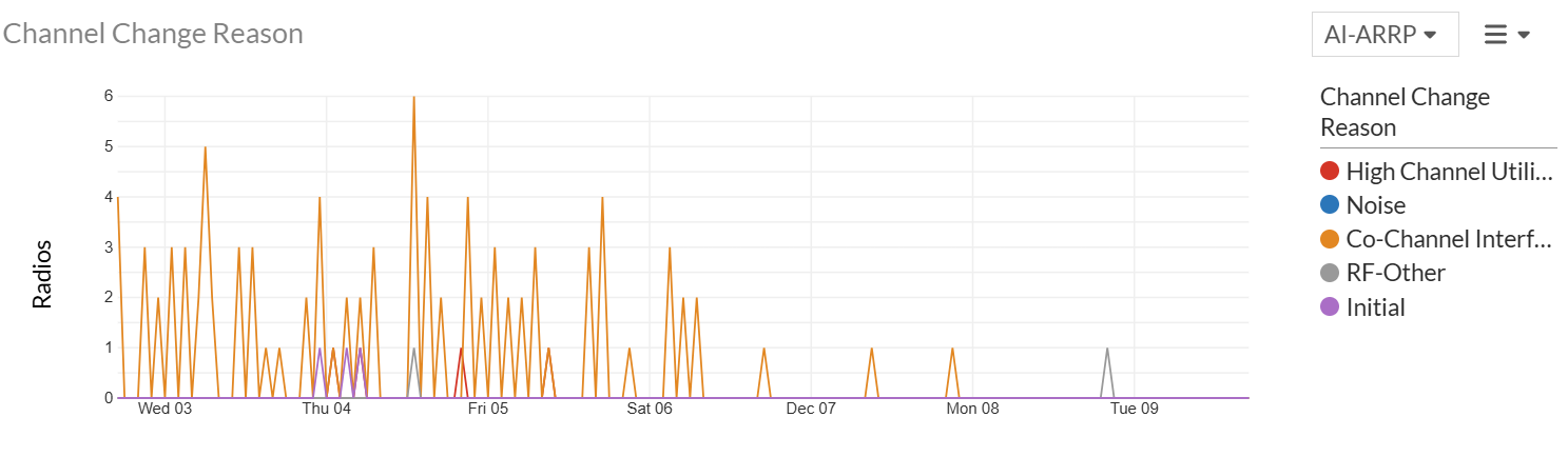 When the AI-ARRP filter is applied, the chart shows all channel changes recommended by AI-ARRP.