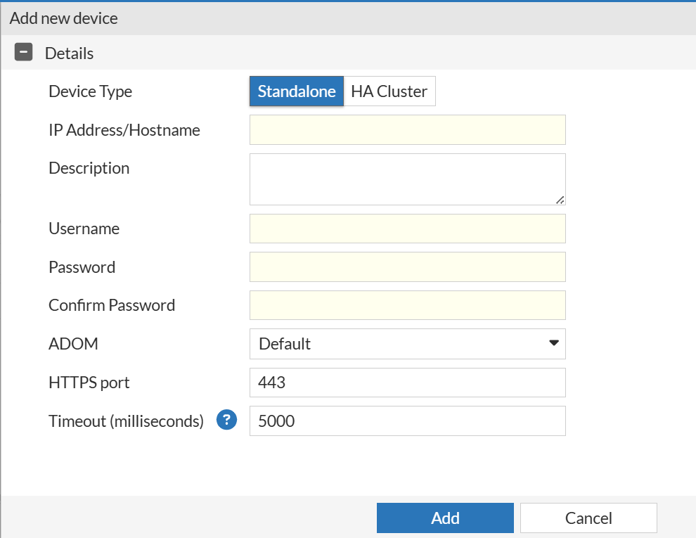 Specify the Timeout duration (milliseconds), that is, the maximum time allowed to establish a connection with FortiGate and obtain a response. The default value is 5000 milliseconds.