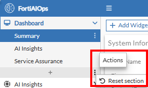 Click Reset dashboard layout to clear all the widgets added to the dashboard.