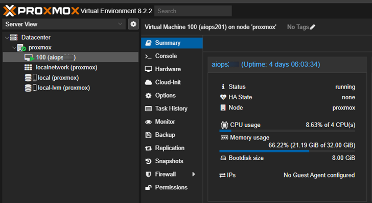 Once the script completes, the FortiAIOps VM is successfully deployed and will be visible in your Proxmox GUI.