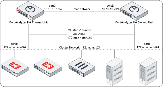- Provide real-time redundancy in case a FortiAnalyzer primary unit fails. If the primary unit fails, another unit in the cluster is selected as the primary unit. See If the primary unit fails.