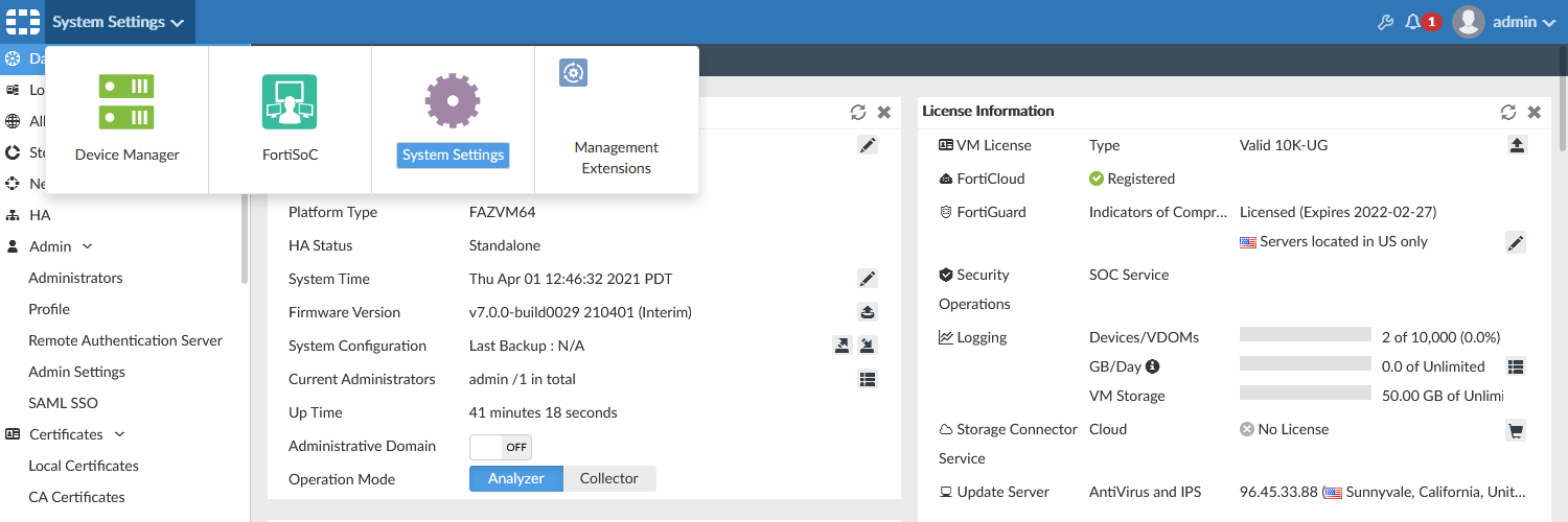 Enables supported management extension applications. See the FortiAnalyzer Administration Guide. |