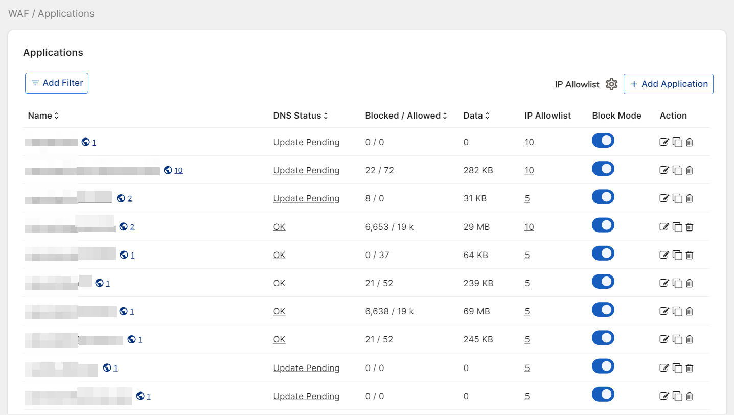 See Onboarding WAF applications for instructions on how to onboard applications.