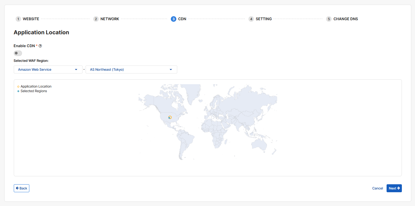 With CDN enabled, you will be asked to select a specific continent or Global, which means your data will be cached on the scrubbing centers within a specific continent or around the world. Selecting a continent may reduce your traffic expense as data transfer is restricted within a continent rather than globally. For the impact on traffic expense when CDN is enabled, see CDN for more information.