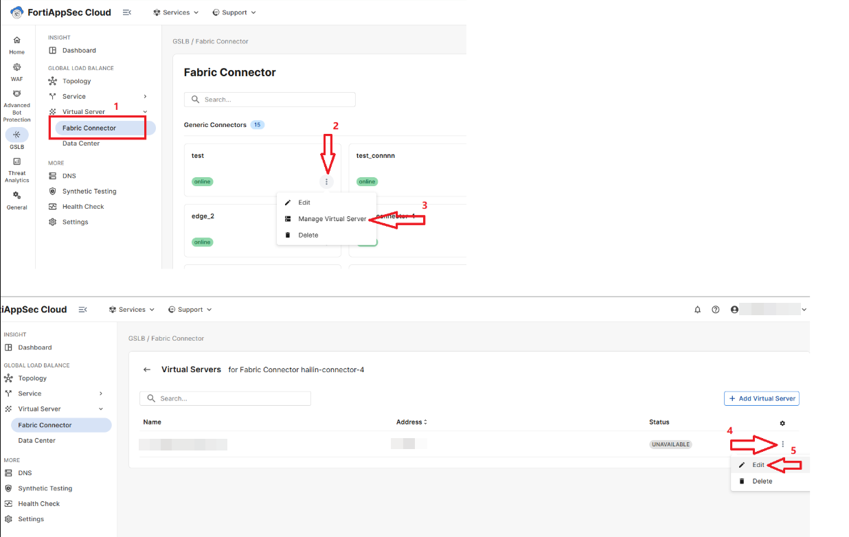 Navigate to GSLB > Virtual Server > Fabric Connector.