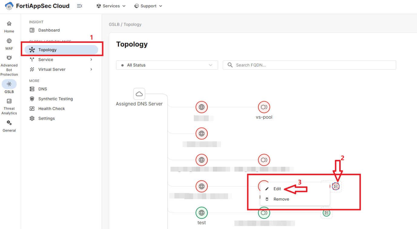 Navigate to GSLB >Topology.