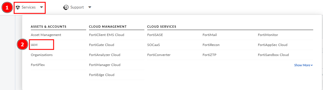 - Log in to FortiCloud: https://support.fortinet.com/welcome/#/