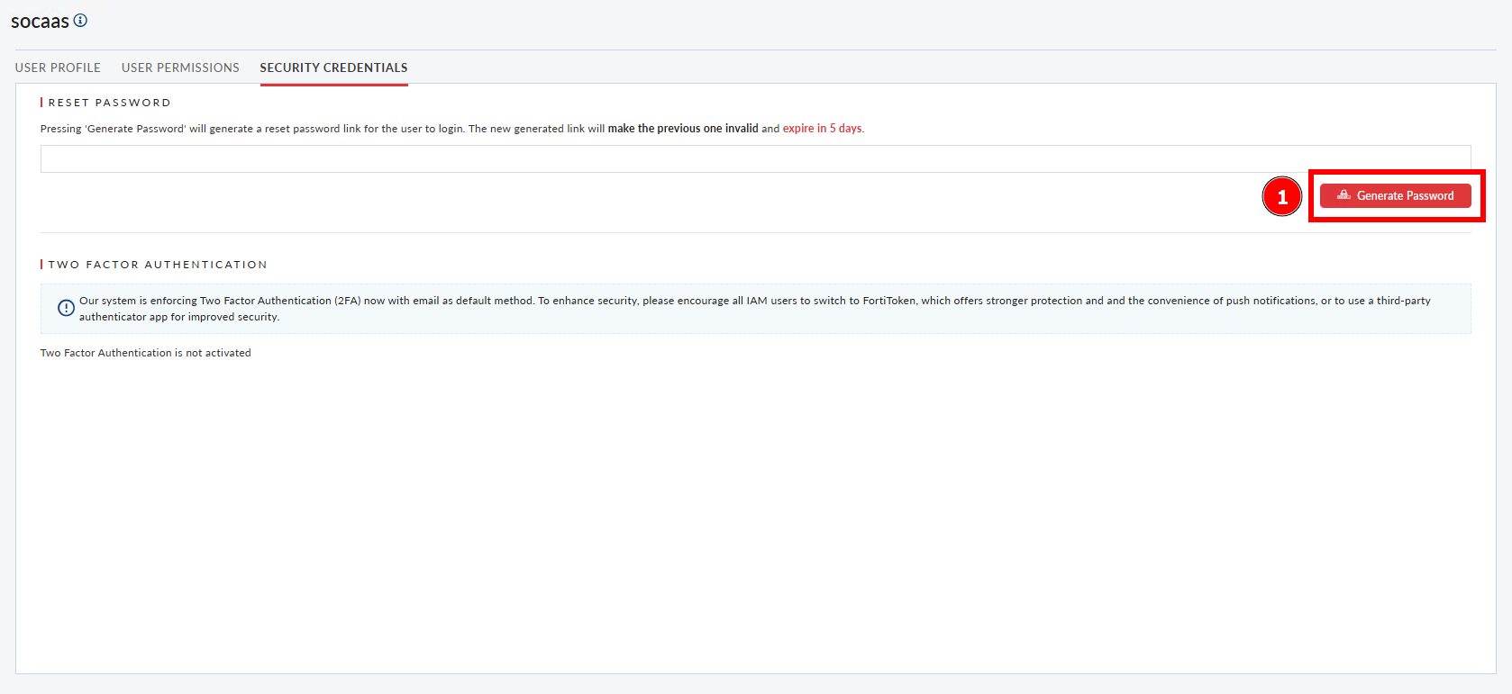 Copy and share the Generate password link with the SOCaaSTeam over email