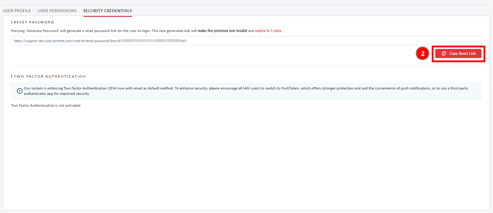 - Click Generate Password. The link will be displayed and click Copy Reset Link to copy the link.