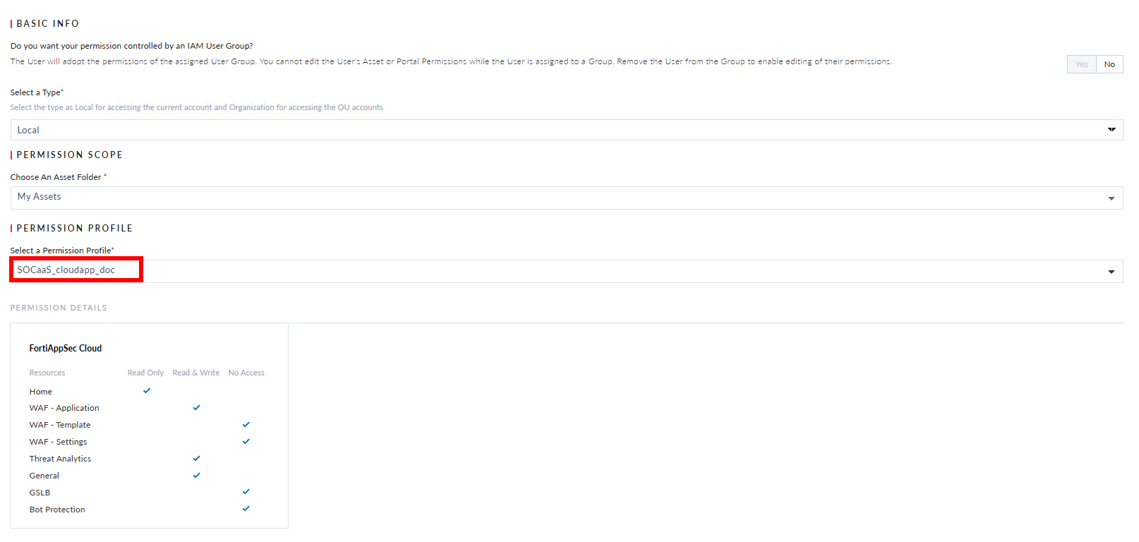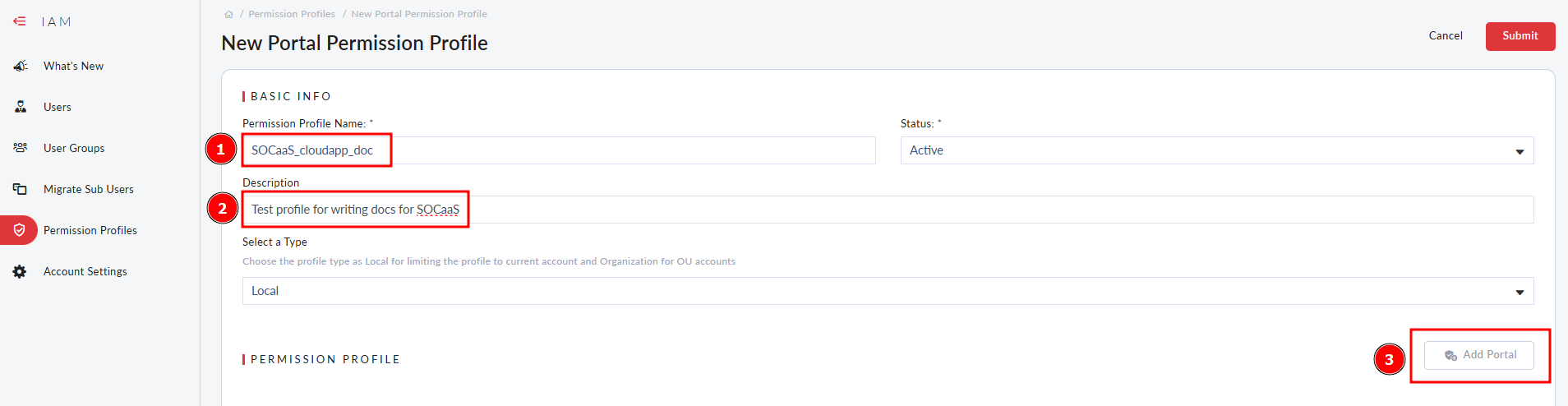 Step 1.1 Set permission profile for SOCaaS IAM