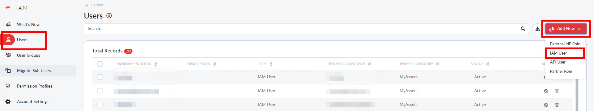 - Select Users, click Add New, then then click IAM User.