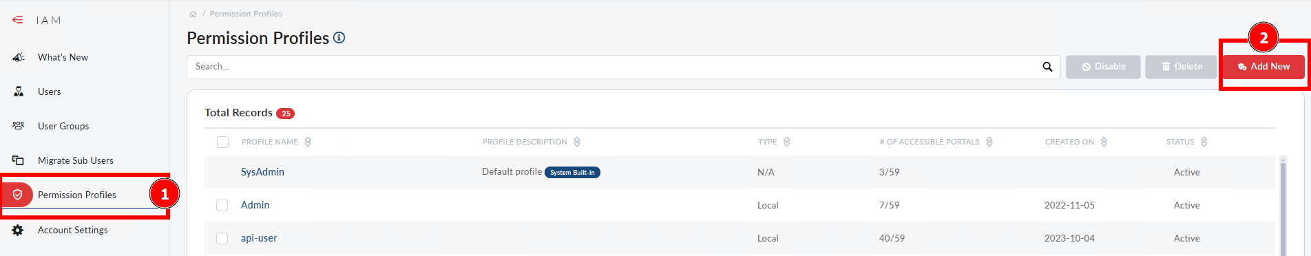 - Select Permission Profiles and click Add New: