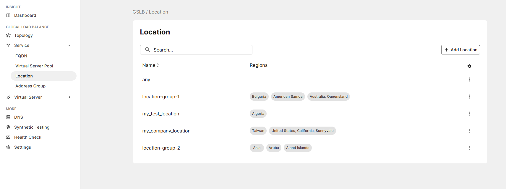- Go to GSLB > Service > Location.