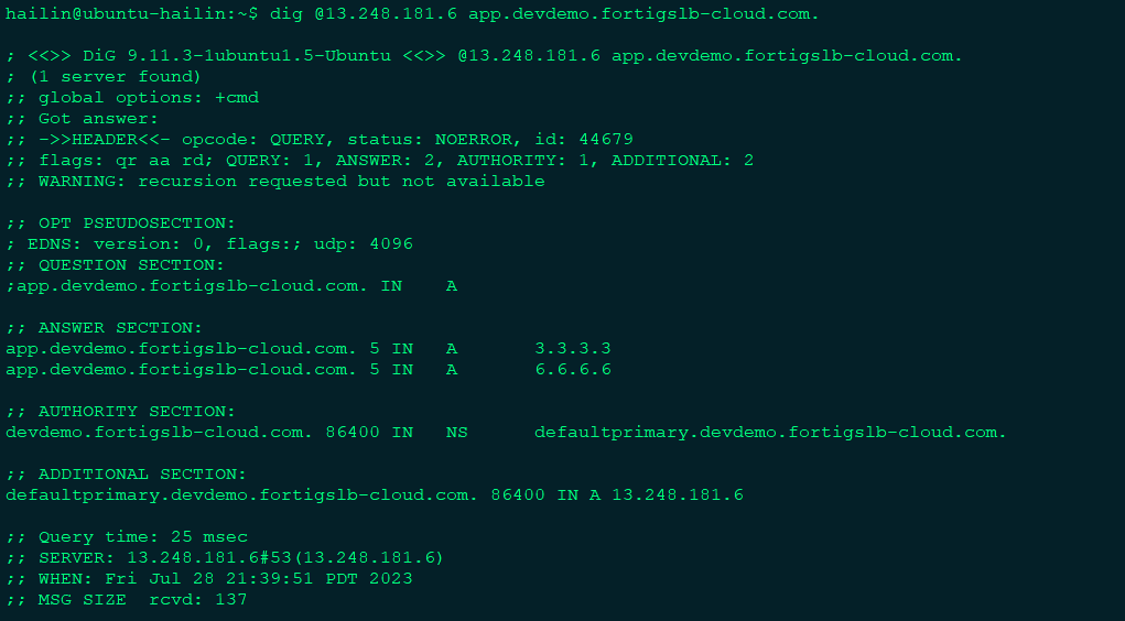 In our example, the test domain is app.devdemo.GSLB-cloud.com. You could use