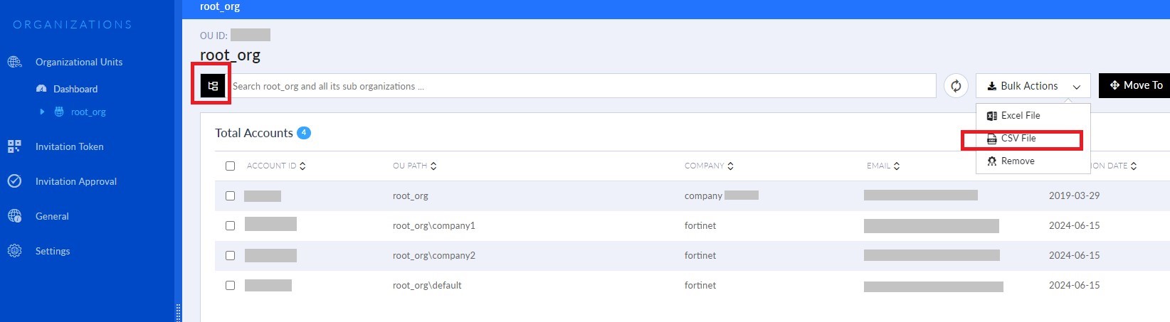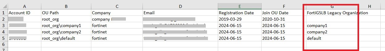 Download the organization file and edit it to include a column specifying the legacy FortiGSLB organization associated with each member account. This ensures we can identify which assets to migrate to the corresponding new member accounts.