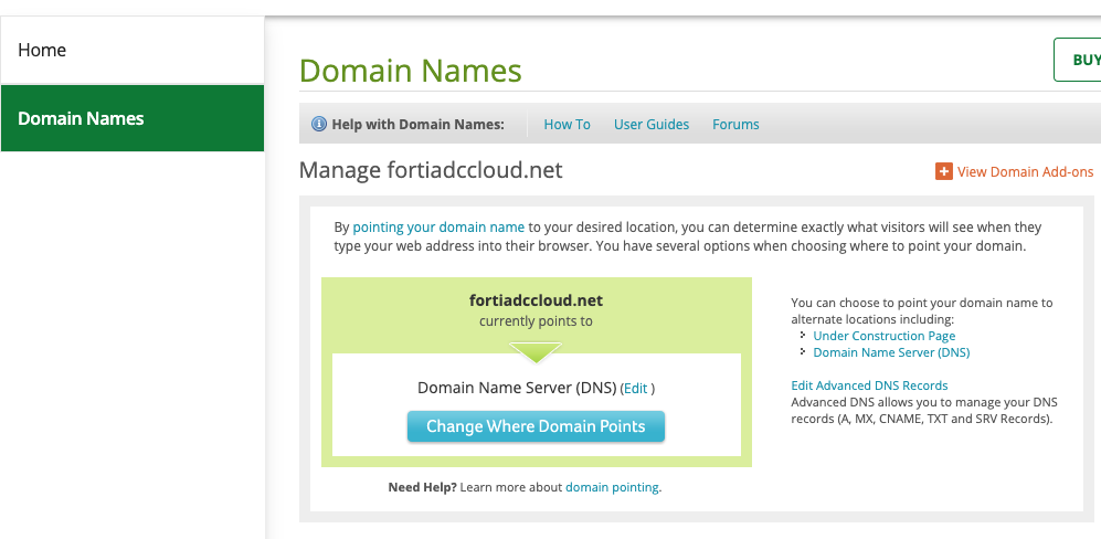 - Click Return to Domain Details. After about 5 minutes, you will be able to