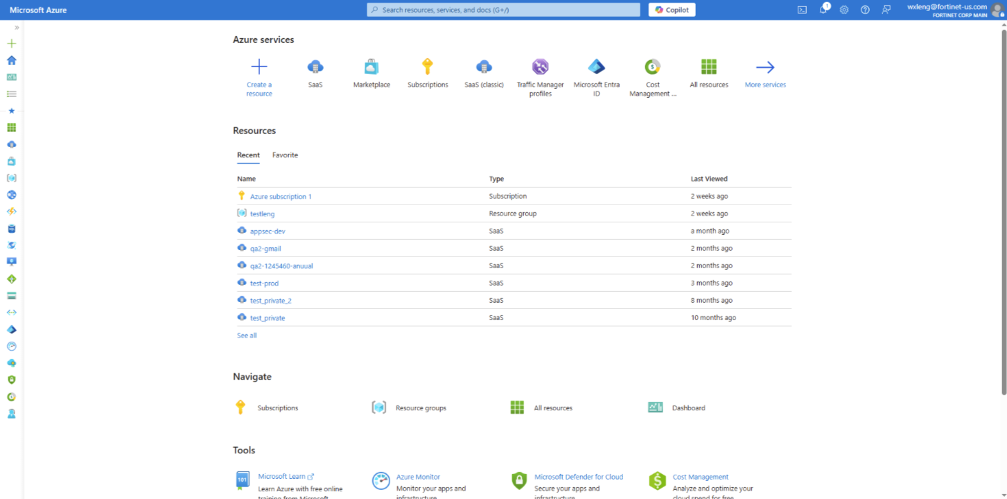 - Locate your newly subscribed FortiAppSec Cloud resource in the Azure portal.