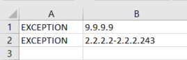 Column B: Contains a single IP address or IP range.