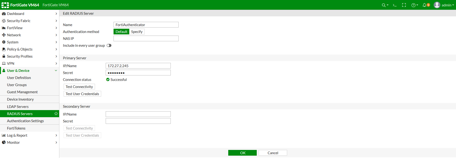 - Go to User & Device > RADIUS Servers, and click Create New.