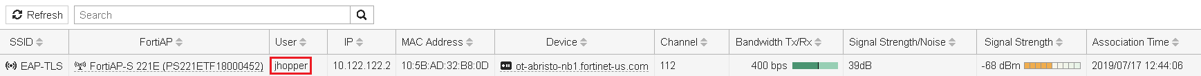 - On the FortiGate, go to Monitor > WiFi Client Monitor to view various information about the client.