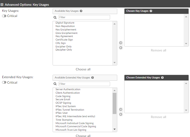 Advanced Options: Key Usages
