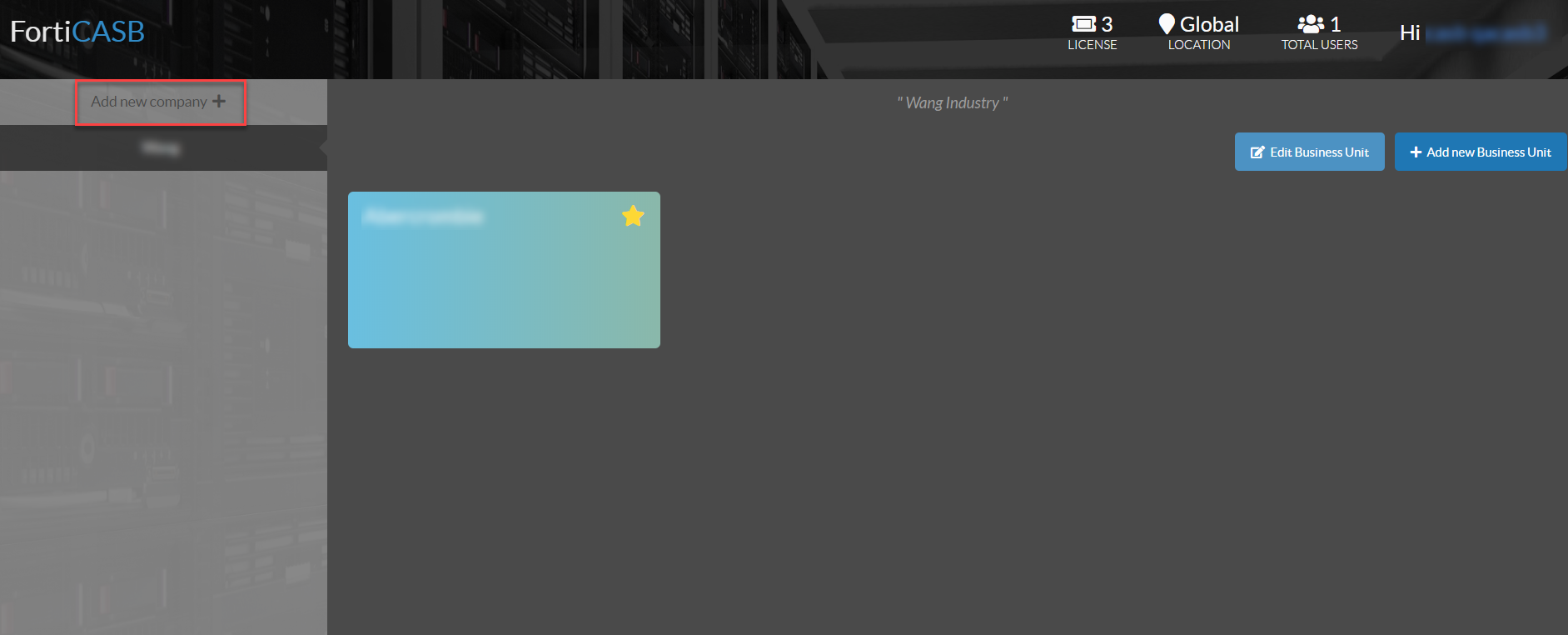 2. Once logged in, Company/Business unit Management dashboard will appear.