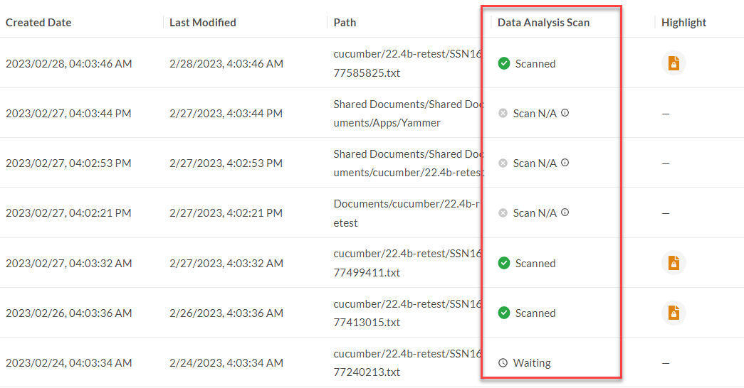 | Scanned | The Data Analysis scan has completed and the scan result is available to the administrator. |