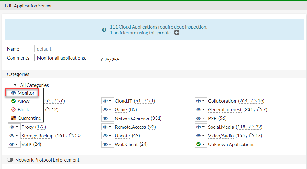 - Enable Application Control to allow FortiCASB to track how many cloud applications are visited.