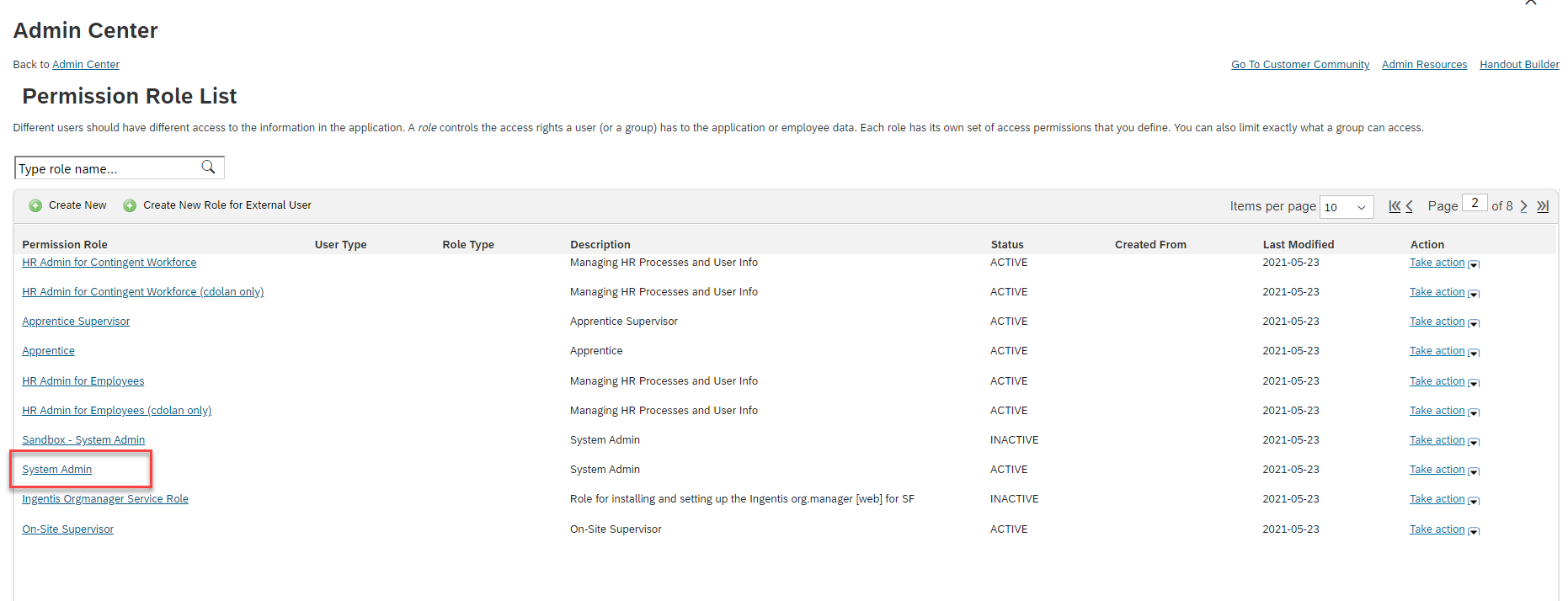 - Look up one of the role that is under the user, e.g. System Admin, and click on it.