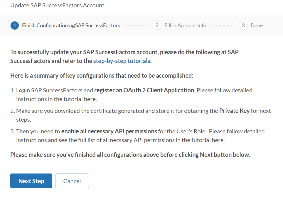- Click on the SAP Success Factors account menu, and select Update Cloud Account.